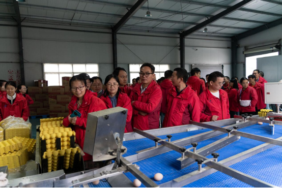 在湖北津羽农牧发展有限公司,大家被现代化的智慧蛋鸡养殖场景所震撼。走进厂区,一栋高层楼房蛋鸡养殖舍拔地而起,直入眼帘,该高层楼房鸡舍为国内首创的将设备与房屋相融合的一体化高层楼房养殖新模式,占地1240平方米,总高度14米,总饲养量为12万羽蛋鸡,围绕鸡、蛋、水、电、料五大数据,创建了蛋鸡养殖数字化管理平台,并与武汉大学合作开发鸡舍巡检机器人,将智能化AI技术应用于蛋鸡养殖行业,共同为蛋鸡养殖行业开拓新质生产力。